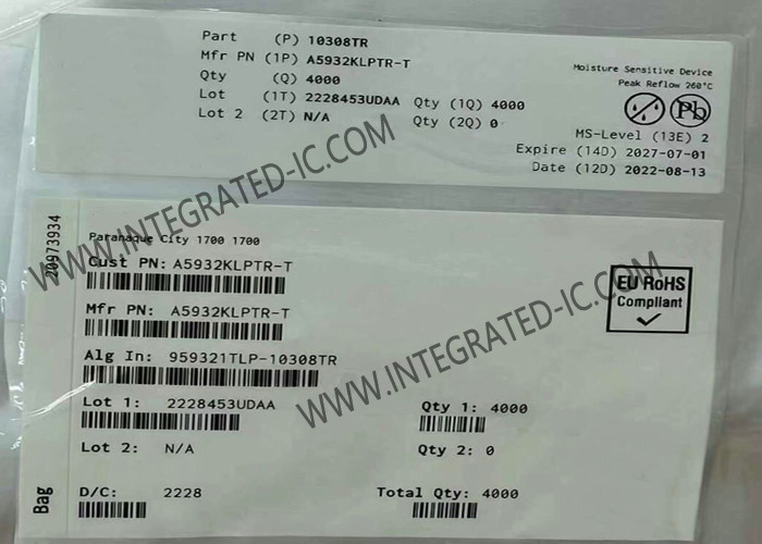 | ハイライト: | A5932KLPTR,A5932KLPTR 統合回路チップ,シヌソイド式センサーなしの扇風機制御器 | ||