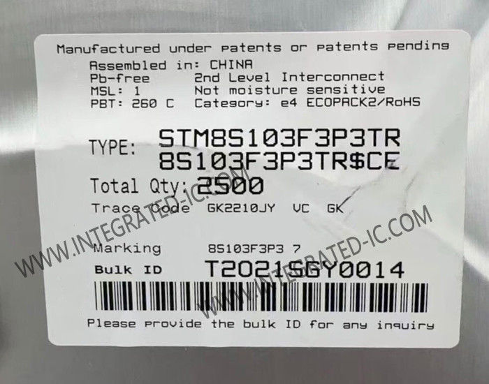 STM8S103F3P3TR"メインストリーム アクセス ライン 8 ビット MCU 8 Kbyte フラッシュ 16 MHz CPU 統合 EEPROM
